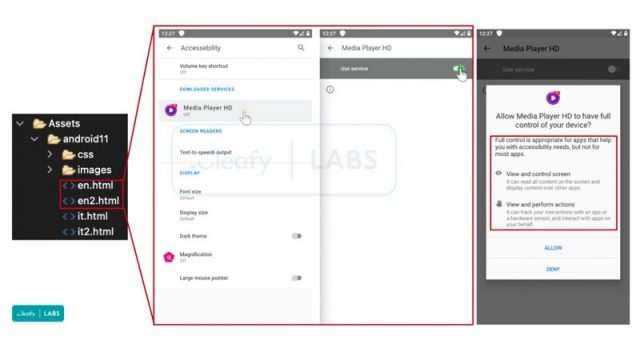 Het wordt geïnstalleerd op apparaten met behulp van side-loading techniek en social engineering schema's.